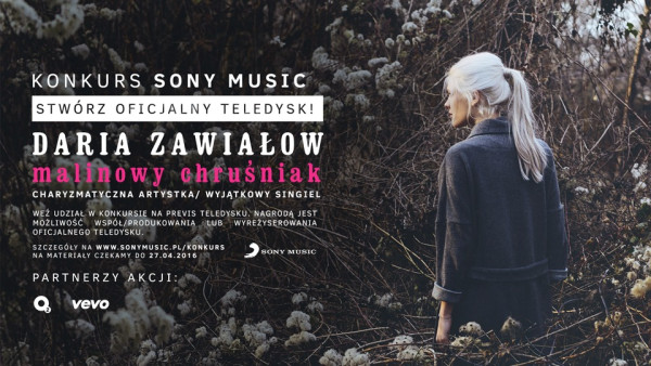 Sony Music jest organizatorem konkursu na teledysk do pierwszego singla Darii Zawiałow pt. MALINOWY CHRUŚNIAK – zapowiadający debiutancki album artystki. Tytuł piosenki to nawiązanie do słynnego wiersza Bolesława Leśmiana, którego ceni zarówno artystka, jak i producent muzyczny płyty – Michał Kush. Równie mocne wrażenie pozostawia śmiały tekst – próba autorskiego erotyku, wyznanie pragnienia i namiętny list kobiety skierowany do ukochanego. Z poetyckimi wersami świetnie koresponduje warstwa muzyczna – rozedrgana, intensywna, pełna podskórnego niepokoju. Zawiałow imponuje też skokami dynamiki w interpretacji wokalnej – od tajemniczego falsetu po ognisty krzyk w refrenie. Całość jest intrygującą zapowiedzią nadejścia nowego kobiecego głosu w polskiej muzyce alternatywnej.