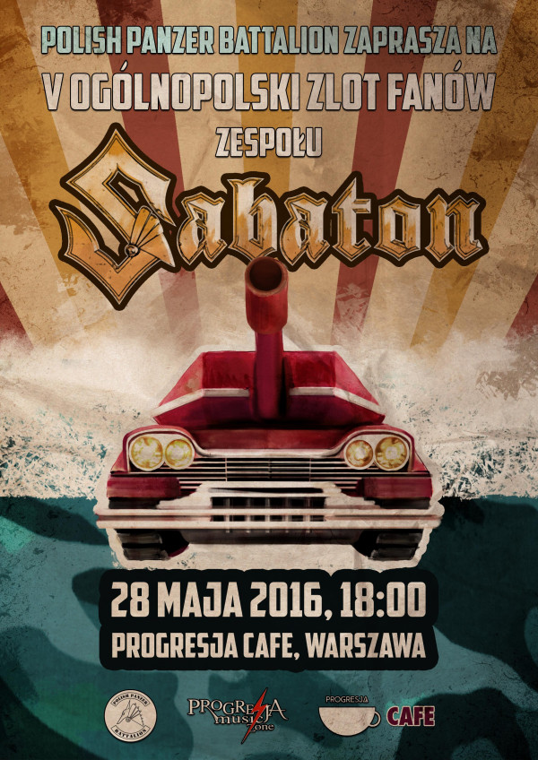 Mając wciąż w pamięci świetną zabawę w zeszłym roku, także i teraz Polish Panzer Battalion pragnie zaprosić WSZYSTKICH sympatyków zespołu Sabaton do Warszawy. To właśnie tu, w zaprzyjaźnionym z nami kultowym klubie Progresja, odbędzie się V Ogólnopolski Zlot Fanów Zespołu Sabaton!