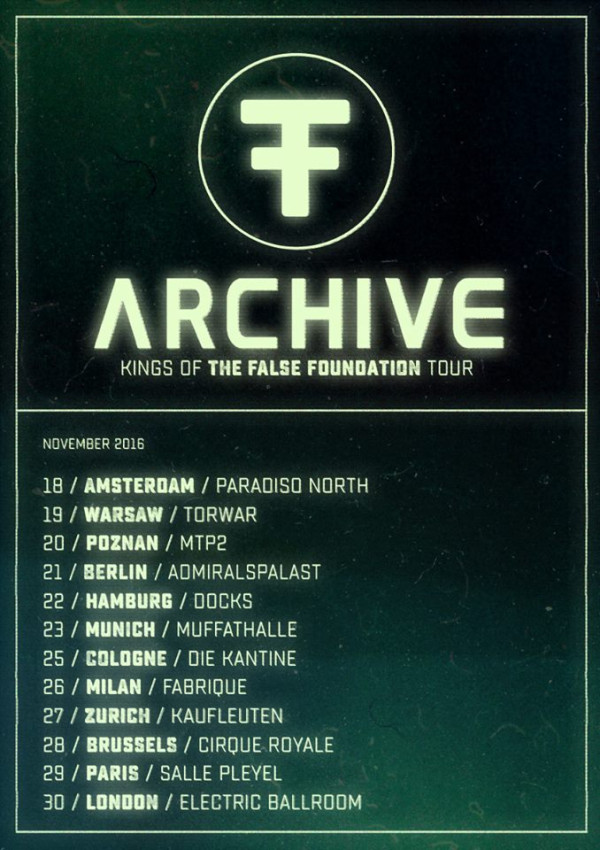 Archive podał na swoim profilu rozpiske trasy koncertowej przewidzianej na koniec roku. Znajduje się na niej 12 miejscowośći, w tym dwie Polskie.