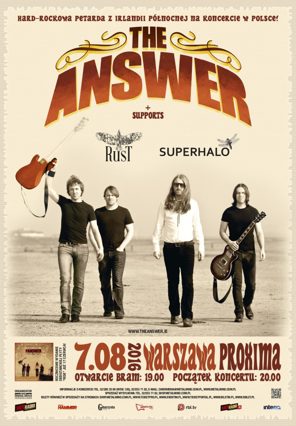 Polski koncert The Answer już 7 sierpnia w warszawskiej Proximie. Zanim jednak wejdą na scenę, publiczność rozgrzeją dwa znakomite polskie zespoły – RusT i Superhalo.