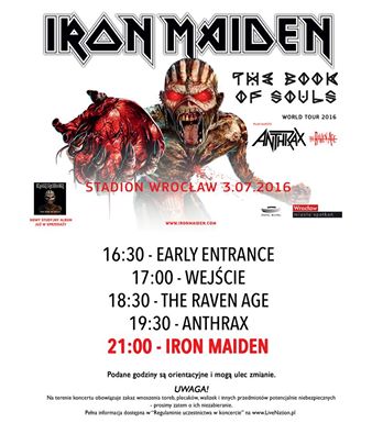 Ostatnie bilety na http://lnation.pl/Iron-Maiden, w autoryzowanych punktach sprzedaży na terenie całego kraju oraz w kasach Stadionu: