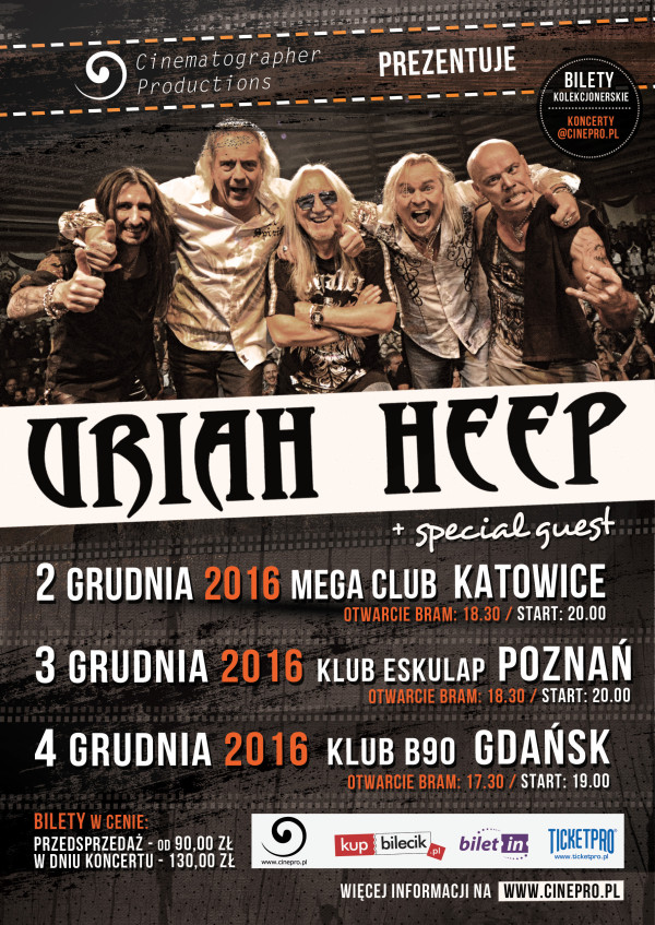 W ciągu trzech wieczorów Uriah Heep wystąpią w Katowicach, Poznaniu oraz Gdańsku. Bilety właśnie trafiły do sprzedaży i przez krótki czas pozostaną w atrakcyjnej, promocyjnej cenie.