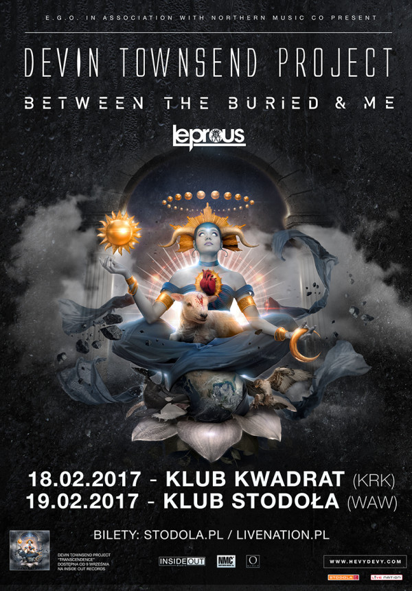 Uwagę zwraca znakomite towarzystwo, które będzie wspierać Devina na trasie, w tym 18 lutego w krakowskim Kwadracie i 19 lutego w warszawskiej Stodole. Jako supportDevinTownsend Project wystąpi norweska formacja Leprous - autorzy kultowych płyt progresywnych „TallPoppySyndrome” czy „Biletaral”, którzy w ubiegłym roku uraczyli nas swoim najgłośniejszym dotąd dziełem: pasjonującym a zarazem melancholijnym, technicznym majstersztykiem pod postacią płyty „The Congregation”. Gościem specjalnym natomiast będzie Between The Buried And Me - amerykańska grupa balansująca na krawędzi prog-rock/metalu i metalcore’u, która w 2007 roku oczarowała nas swoim epickim i najsłynniejszym dotąd dziełem „Colors”, a ostatnio podzieliła się z nami w ubiegłym roku krążkiem „ComaEcliptic”.