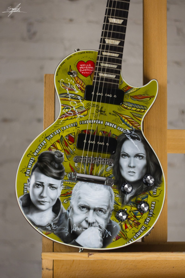 Już po raz piąty, malarz Szymon Chwalisz przekazał na Aukcję WOŚP niebanalną, ręcznie malowaną gitarę z wizerunkami i autografami artystów występujących na ostatnim Przystanku Woodstock.