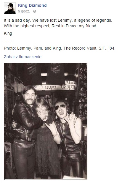 Tak świat muzyki wspomina zmarłego wczoraj w Los Angeles Lemmy Kilmistera z Motorhead. Na swoich portalach społecznościowych wspominają go między innymi: Ozzy Osbourne, Slash, King Diamond.