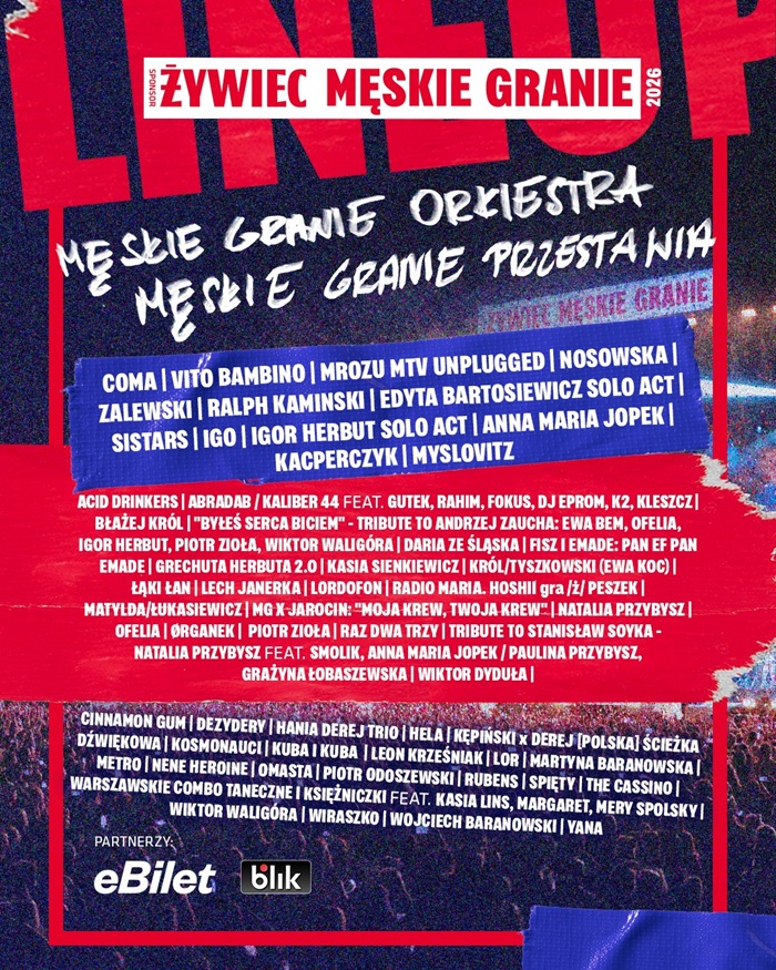 Regularna sprzedaż biletów wystartuje po ogłoszeniu line-upu. Dodatkowa pula biletów pojawi się także po premierze singla Męskie Granie Orkiestry 2026.